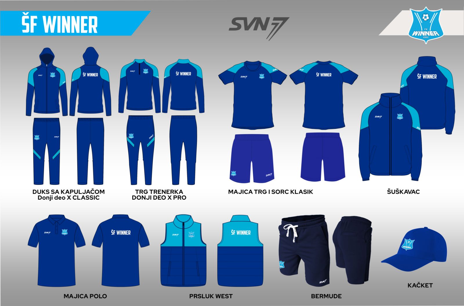Obucite se u boje škole fudbala Winner Novi Beograd, pokažite svoj timski duh i ponesite deo klupske tradicije sa sobom – bilo na treningu, u školi ili svakodnevnim aktivnostima.